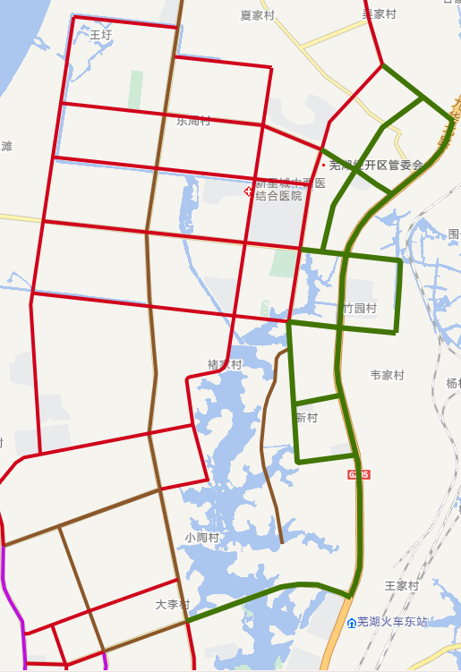 | 1 | 鸠江区、镜湖区 | 鸠江北路 | 赤铸山路 | 北京中路 | 1.8 | 68.5 |